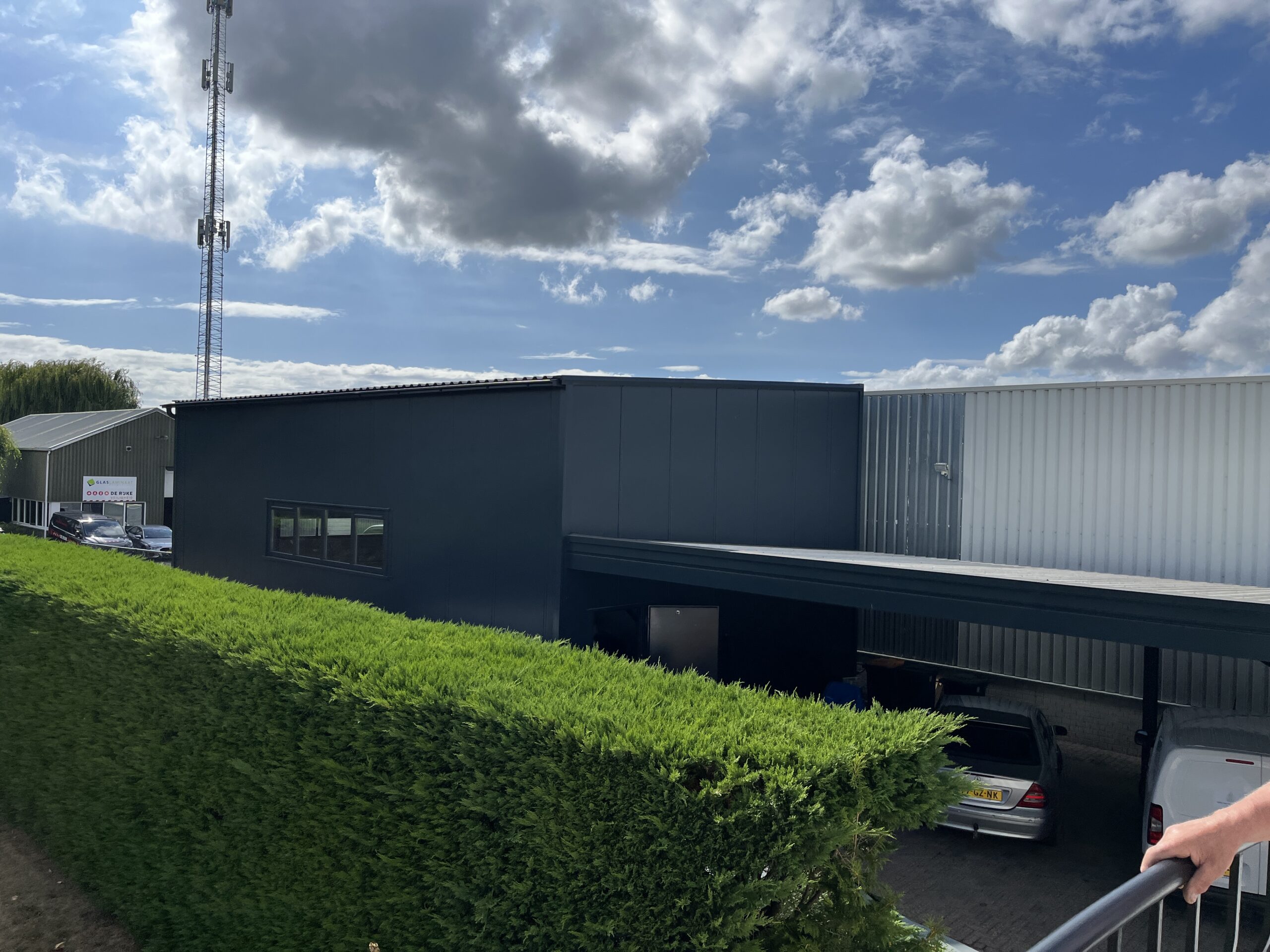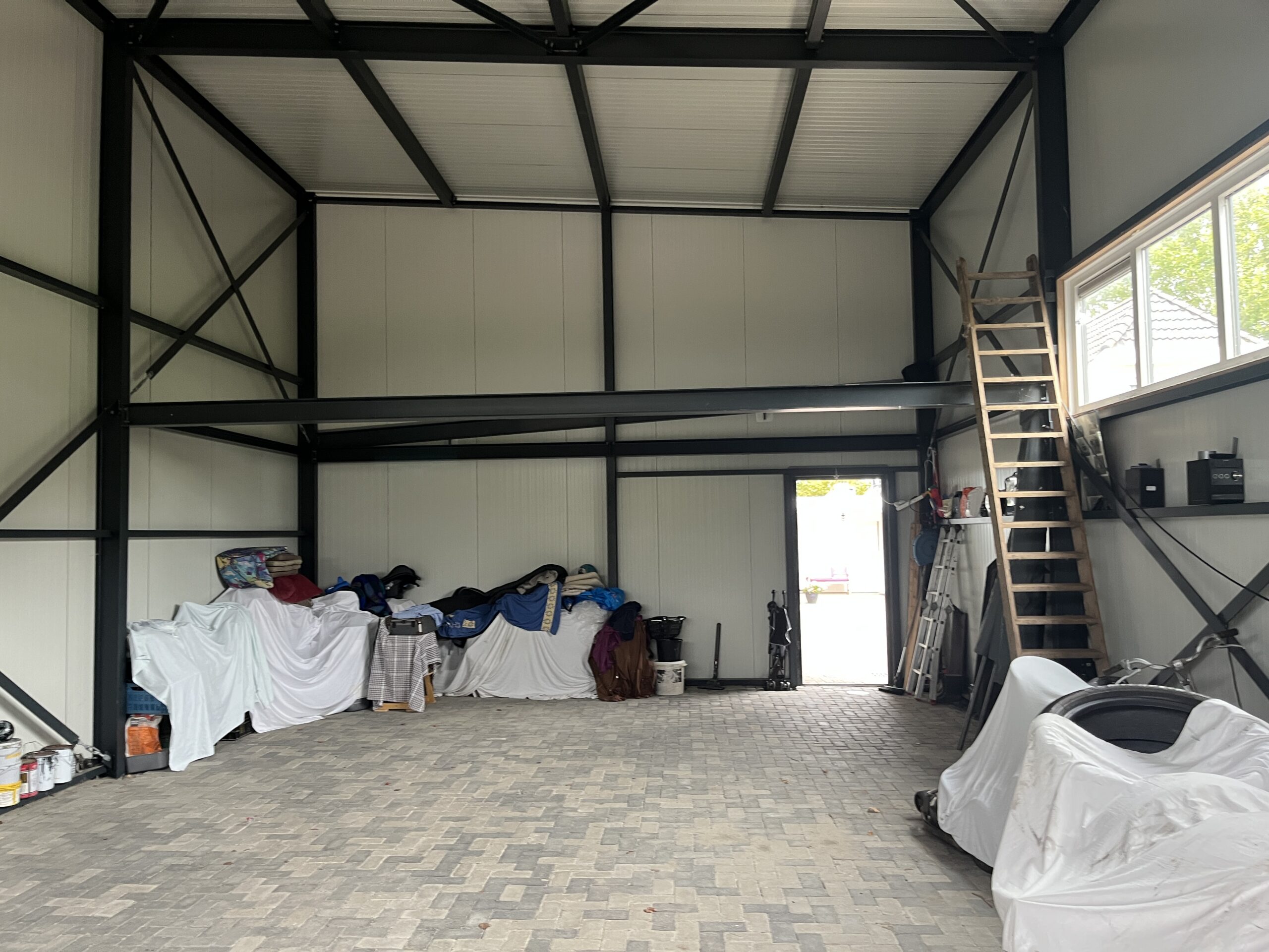 De bedrijfsloods van 12 x 7,5 m en circa 5,5 m hoog is gebouwd in 2024-2025. De loods is volledig geïsoleerd en toegankelijk via een grote, hoge sectionaaldeur (5 x 5) en twee loopdeuren. Bij de bouw is rekening gehouden met het realiseren van een extra verdiepingsvloer. De stalen kolommen hiervoor zijn al aangebracht.